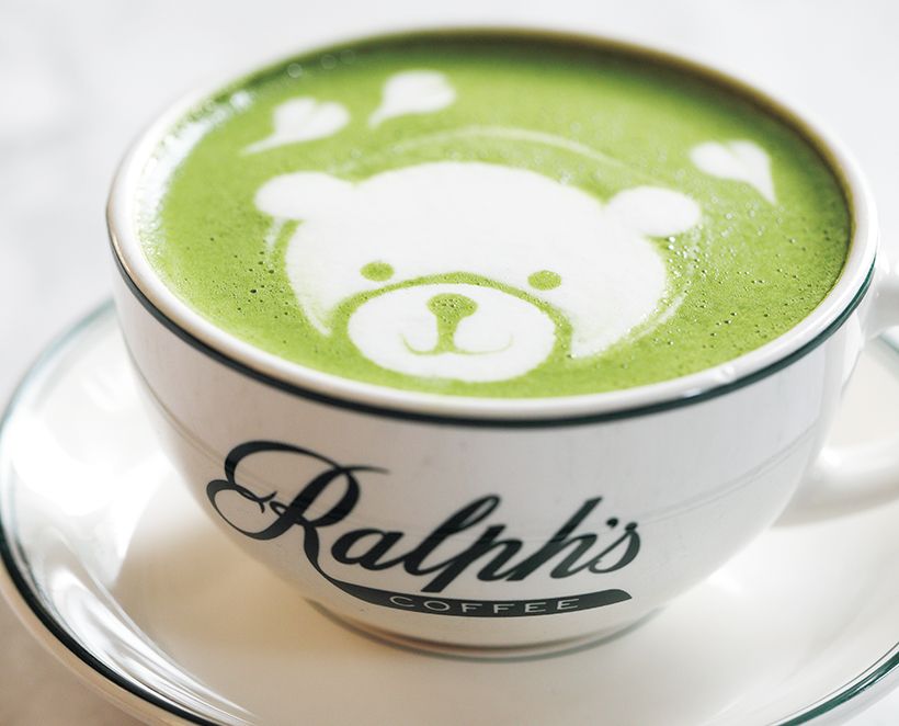 ポロベアのラテアートが愛らしい「宇治抹茶ラテ」847円。