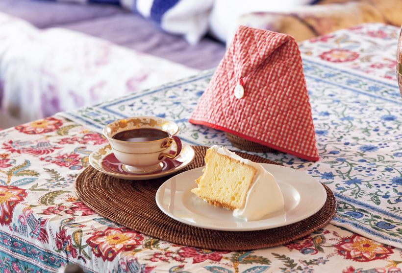 お洒落な友人のリビングルームのようにくつろげるカフェ78歳の現役モデル“マダム・チェリー”こと福安千恵子さんが自宅で愛用していた家具と器を用いて25年前にオープンしたカフェ。3名とも「シフォンケーキが最高においしい!」と口を揃えます。寺谷さんは、バラ好きのマダム・チェリーを自宅に迎え、よくバラ談義をするそう。シフォンケーキ850円、ポットでサービスされる紅茶900円。