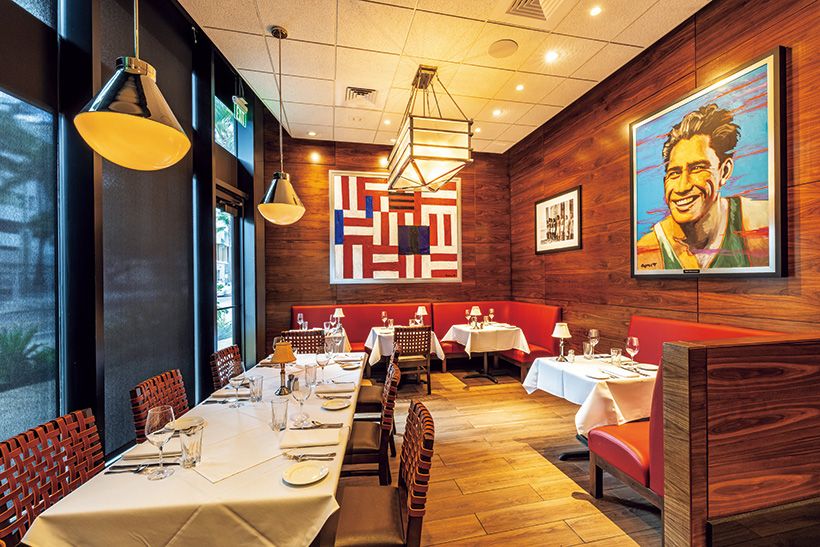 王族や伝説のサーファーなど、ハワイの歴史や文化を彩る人物のポートレート絵画が飾られる洗練された店内。
