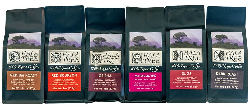 コーヒーはすべて自社農園で栽培された100パーセントコナコーヒー。いずれも香り高く、酸味が少ないまろやかな味わいが特徴。