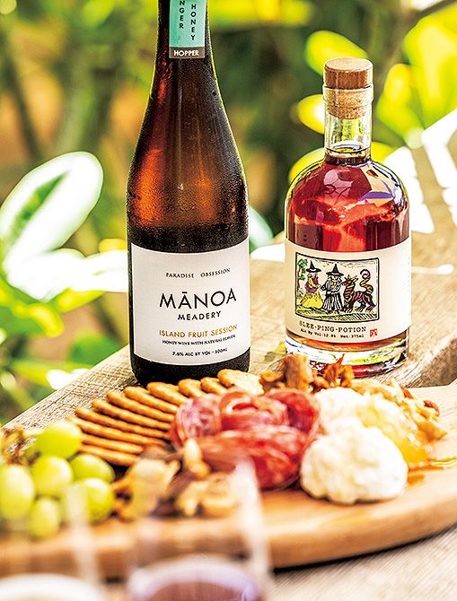 2020年からミードの製造、販売を開始。ハワイ産の原料を主に使い、甘みを抑えた微発泡ミードを手作りする希少な醸造所。生ハムやチーズとミードは相性抜群です。「チーズ&生ハムプラッター」22ドル。「ジンジャーハニーホッパー」15ドル。「スリーピングポーション」22ドル。
