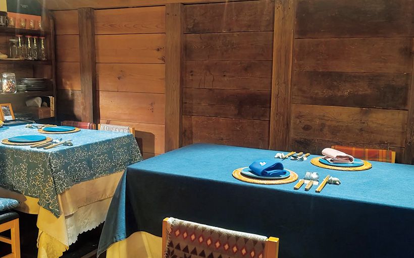 ロッジのようなダイニング。