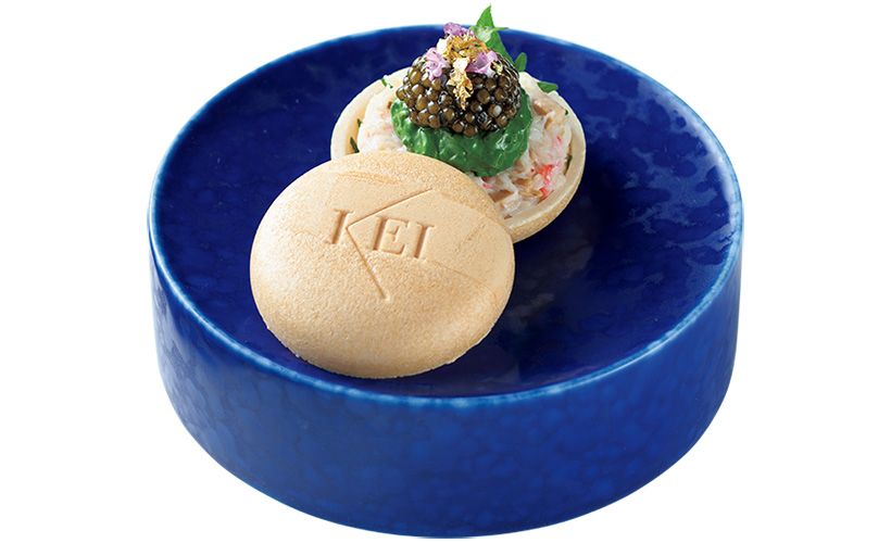 季節の具材の最中。冬は兵庫県の香住蟹と「KEI Selection」のキャビアが主役。
