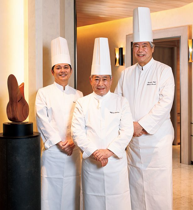 右から、岩崎総料理長、中村統括名誉総料理長、池内料理長。