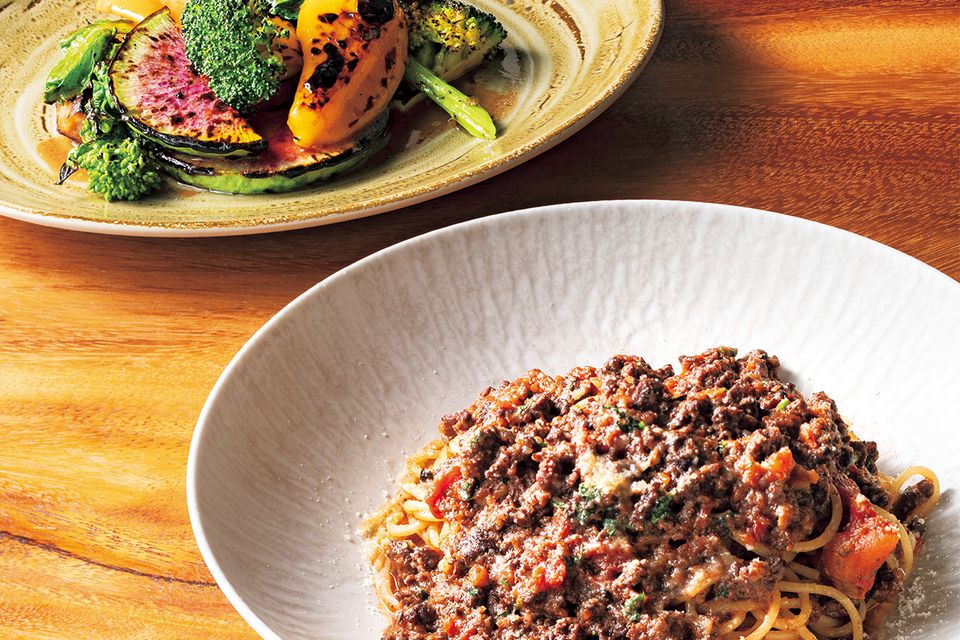 「生産者の思いを料理を通して届けたい」と、確固たる実力とともに信頼あるハンターから届くジビエや、農家直送野菜を使った料理(写真奥、1650円)を提供しています。ここでしか食べられない味を求め、発酵調味料も一からつくるこだわりよう。おすすめは、ジビエ初心者にも食べやすく、くせになるミートソース(同写真中央、1980円)とメンチカツ(同写真手前、880円)。 この記事の掲載号