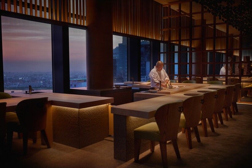 同ホテルでぜひ訪れたいのが、シグネチャーレストラン「月見」。寿司と鉄板焼き、2つのカウンターで熟練の技が堪能できます。開業1周年の日にはミシュランガイドの星に輝くシェフを招聘、一夜限りの美食イベントを開催し大盛況となりました。