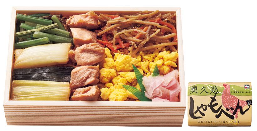 【茨城県】身の引き締まったしゃもを味わう新星駅弁奥久慈しゃもべん2021年より販売を開始。昼夜の寒暖差が激しい県北地域でたくましく育つ奥久慈しゃもは、冷めてもジューシーな食感。甘辛いそぼろや、山菜の醬油漬けが、ご飯のおいしさを引き立てます。那珂川や久慈川など地元の水を使った日本酒にもぴったりです。