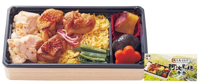 【徳島県】胸肉&もも肉を観光列車で欲張りに栗尾商店監修 阿波尾鶏弁当全国随一の出荷量を誇る「阿波尾鶏」のもも肉は照り焼きに、胸肉は塩焼きにして豪快にトッピング。甘みたっぷりの鳴門金時の蜜いもは、箸休めに嬉しい一品です。県の東西を結ぶ観光列車に乗って、ゆったりと召し上がれ! 公式HPにて要予約。