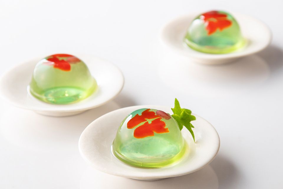 見た目も涼やかな和菓子「金魚」が期間限定で今年もお目見えしました。瑞々しいマスカットの味わいが広がる和風ぜりぃに、羊羹の金魚を浮かべて。その愛らしい姿は一目で笑みがこぼれます。
