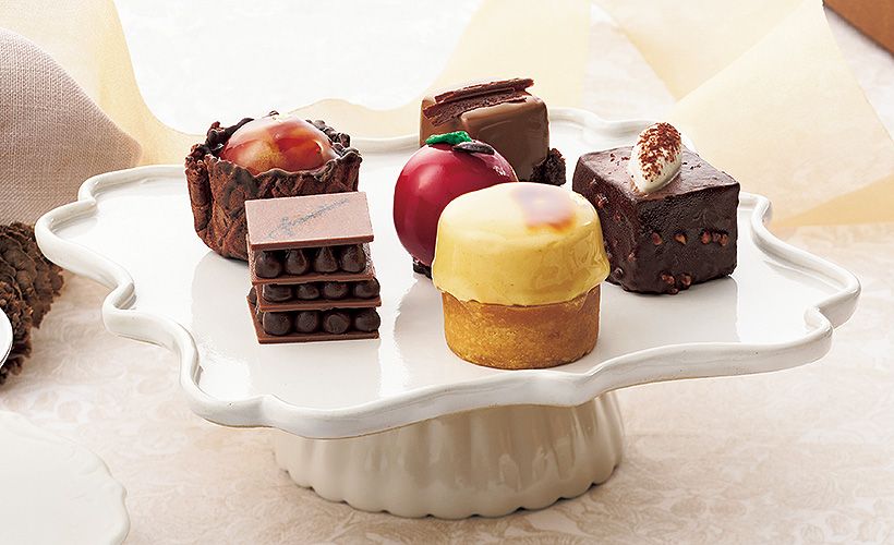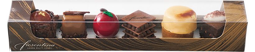 タルトタタン、洋梨のムースなど旬の果実がメインのものから、オリジナルチョコレート「Grande H」の食感を生かした味わいまで。一口サイズの生菓子がステージでおすまししているようなパッケージも素敵。