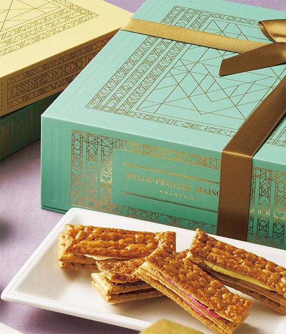 フランス産のサクサクのフィユタージュ(パイ生地)に、ショコラ、ヴァニラ、レモンやフランボワーズといったクリームをはさんだパイ菓子。本をかたどったパッケージも喜ばれるポイントです。