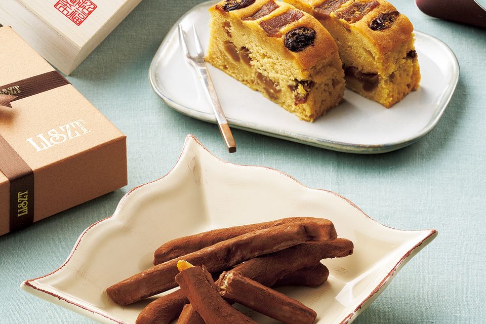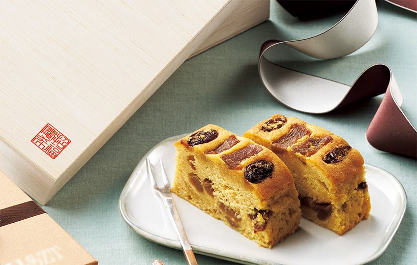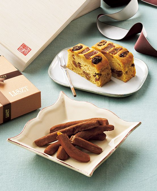 果物より糖度の高い安納いもを使用し、特製の木箱で焼きあげたパウンドケーキ。青森県産のりんごと種子島産黒糖の優しい甘み、しっとりとした食感が口いっぱいに広がります。