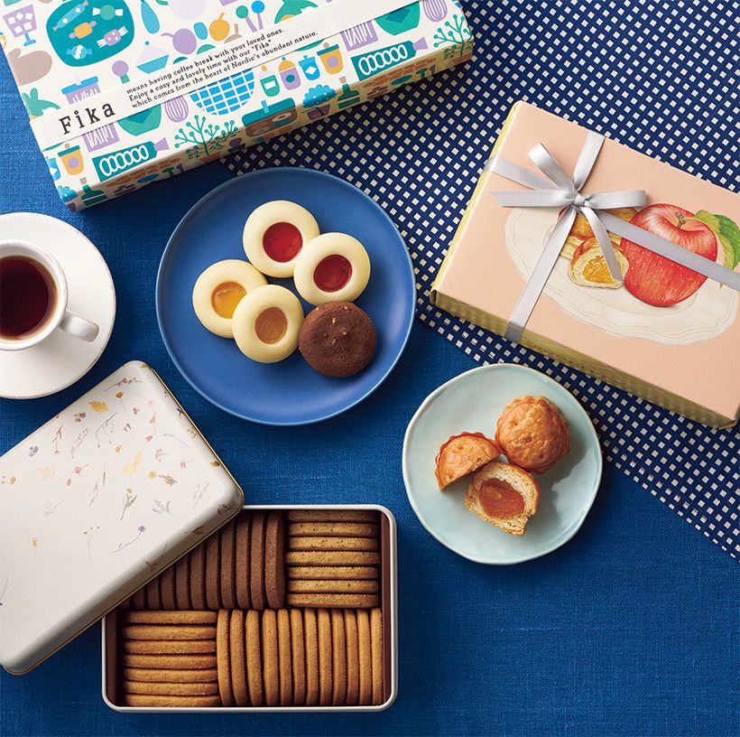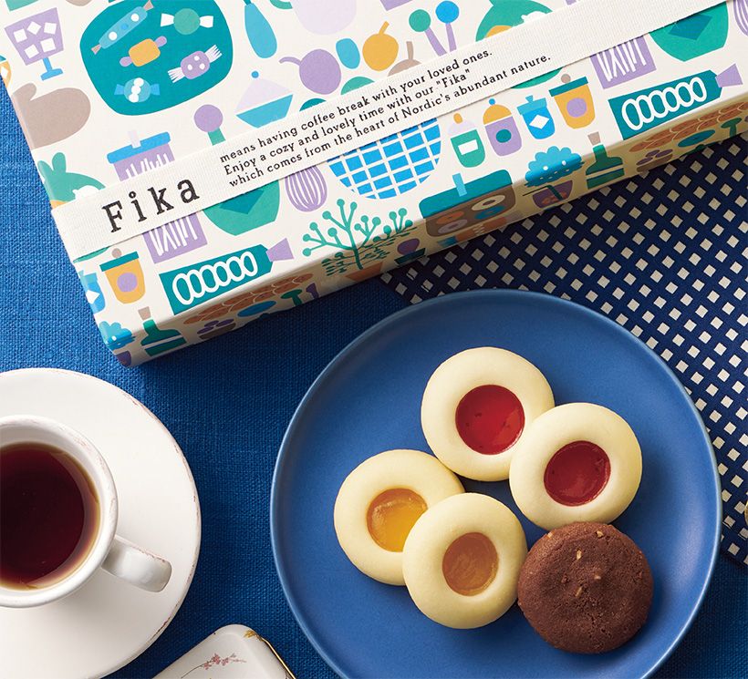 「フィーカ」はスウェーデン語で “お茶の時間” という意味。「北欧に足を運んで立ち上げたオリジナルブランドです」。“ハッロングロットル” と呼ばれる白いクッキーはホロホロ食感が楽しい。