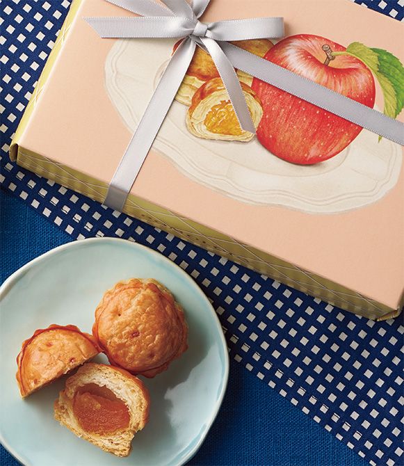 一口サイズのパイの中身は、蜜漬けのふじりんご。「フルーツを主役にしたオリジナルブランドです。プチパイは、袋から出してオーブントースターで軽く焼くと、より風味が際立ちます」。