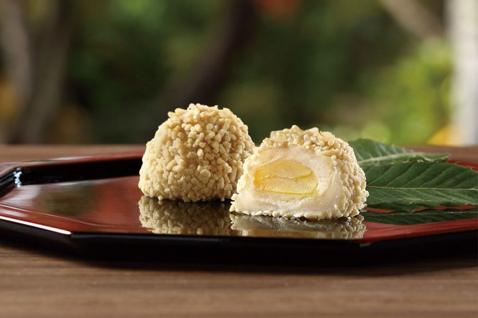 滋味深い栗そぼろをまとったやわらかなお餅と、風味豊かな栗あんに包まれた蜜漬けの一粒栗。ほのかな甘みのお餅と、濃厚な栗の風味が調和する、栗好き必食の和菓子です。栗本来の風味を最大限に生かせるよう、蜜に漬け込む時間を吟味し糖度を調整。その一粒栗を、なめらかな食感の栗あんとさらりとした食感の栗そぼろ、2種類の栗あんで包んでいます。栗あん、栗そぼろ、一粒栗、さまざまな栗の味わいを一粒で楽しめる季節限定品です。細部にまで職人の技が光る逸品を心ゆくまで堪能して。