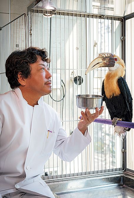 サイチョウの “バンダ” は入院室全体の見張り役だ。