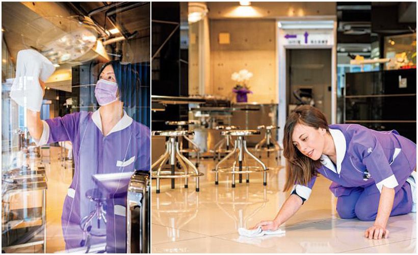 動物の毛一本落ちていないのでは?と思うほどピカピカの床。それもそのはず、床をモップではなく手で拭くスタッフの姿を誰もが頻繁に見る。