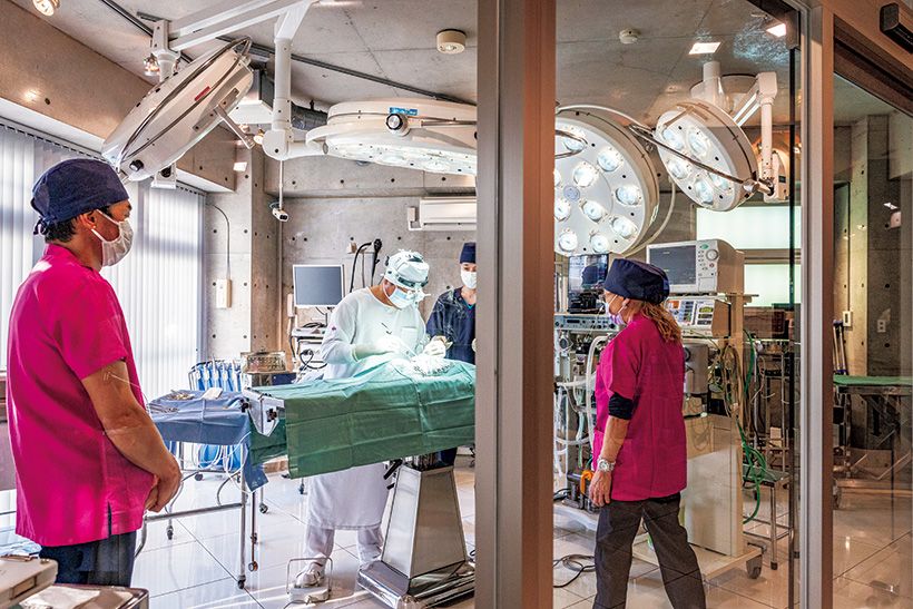 ガラス張りの手術室。手術というと血というイメージがあるが、野村院長のスゴ技でほとんど血が出ることはない。
