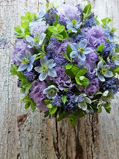 淡いパープルの美しいリシアンサス‘NFラベンダー’に、ニゲラやセアノサス、アリウムなどを加えたクールカラーのアレンジ。お友だちへお誕生日の贈り花です。