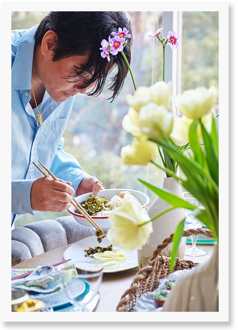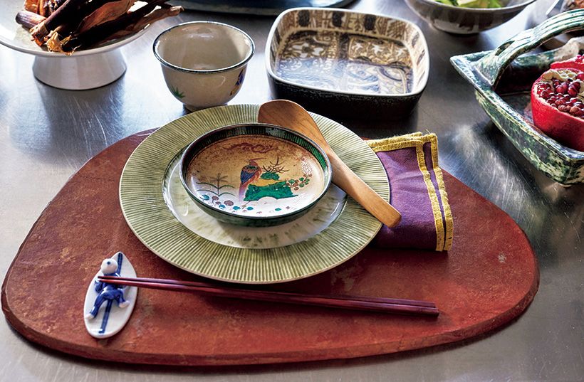 ミックス感覚の器の取り合わせを美しく仕上げるには、「ごちゃごちゃ」に見えず、それぞれの器の魅力を引き立てる独自ルールがあると聞きました。テーブルシーンからヒデヤ流の「整える」術を教わりました。