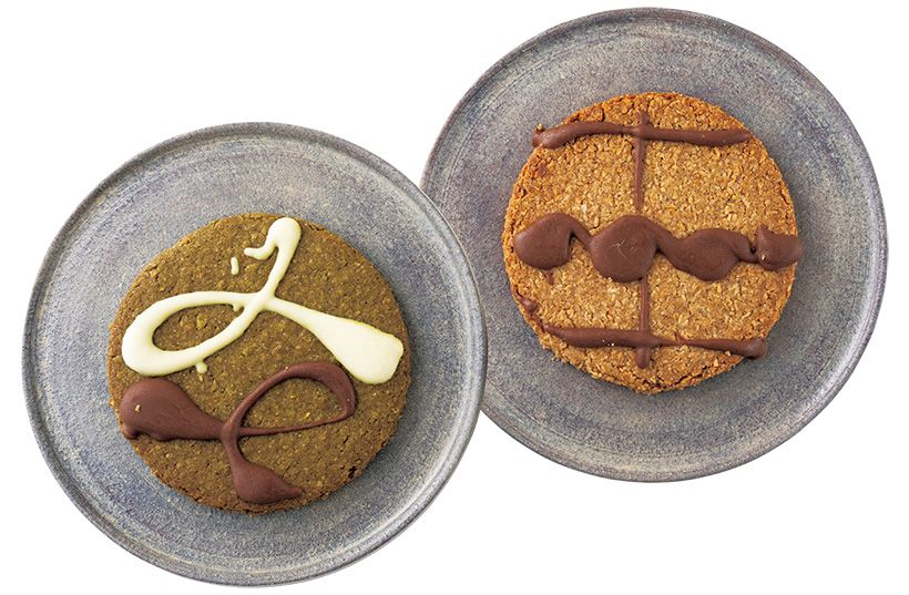 濱田庄司の絵付けをモチーフにした「庄司さんのビスケット」は「もえぎBASE」で購入できる。