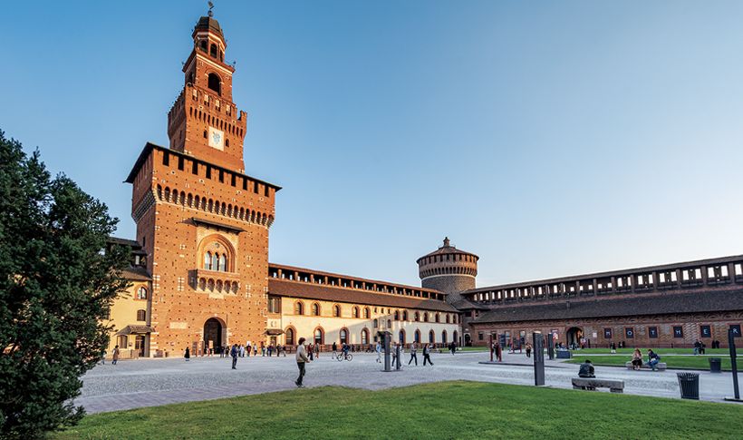 スフォルツェスコ城。右側の城壁内にロンダニーニのピエタ美術館がある。
