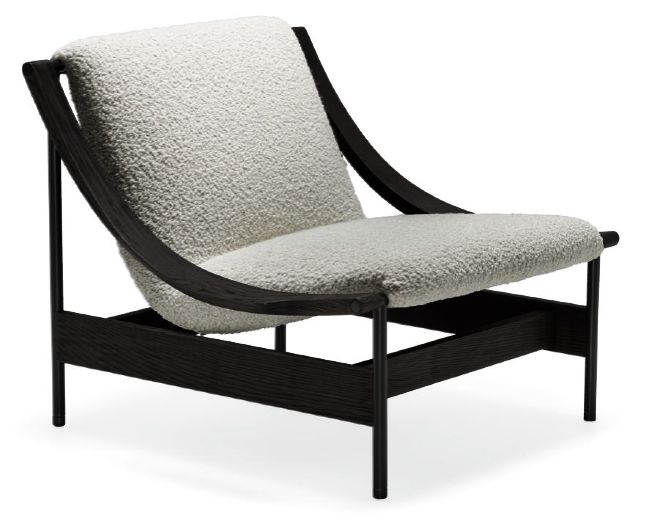 ガムフラテージによるアームチェア「リア」。刀剣をイメージしたアームと浮遊するかのような軽快さが特徴。