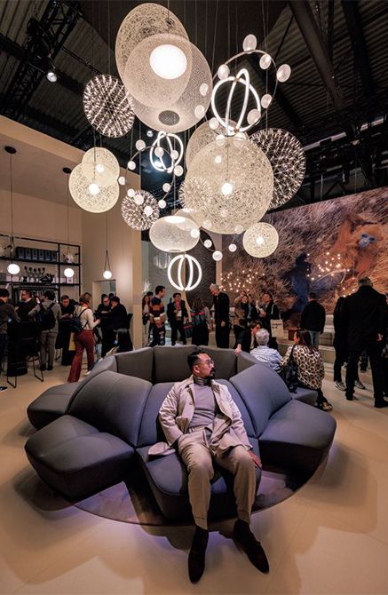 「モーイを知らない人に出会いたい」とサローネに出展。モーイの照明は強い人気を誇る。