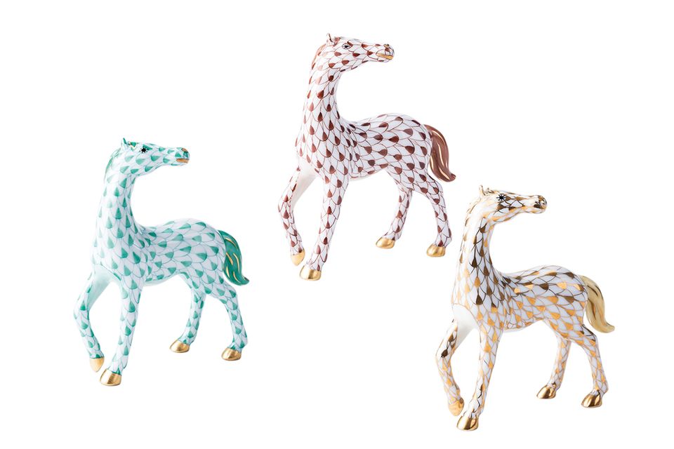 優美なフォルムと鮮やかなペイントが魅力の「うま」の置物が登場しました。定番色のゴールドとグリーンに、イヤーズカラーであるブラウンを加えた3色の展開。熟練の職人による造形と手描きの鱗模様が見事な、唯一無二の逸品です。