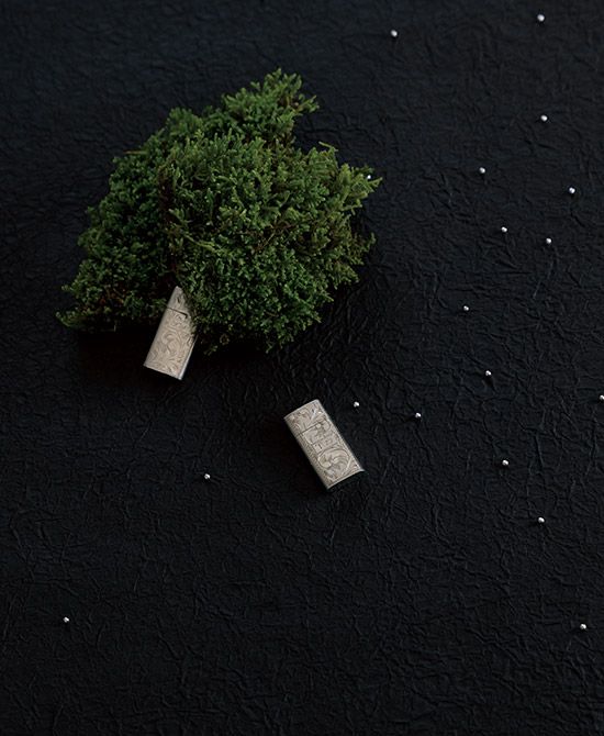 お父様が銀座の老舗・宮本商行にオーダーされた仁丹入れ。手のひらに収まるほどの小さな銀のボックスには、さりげなくイニシャルも刻まれている。