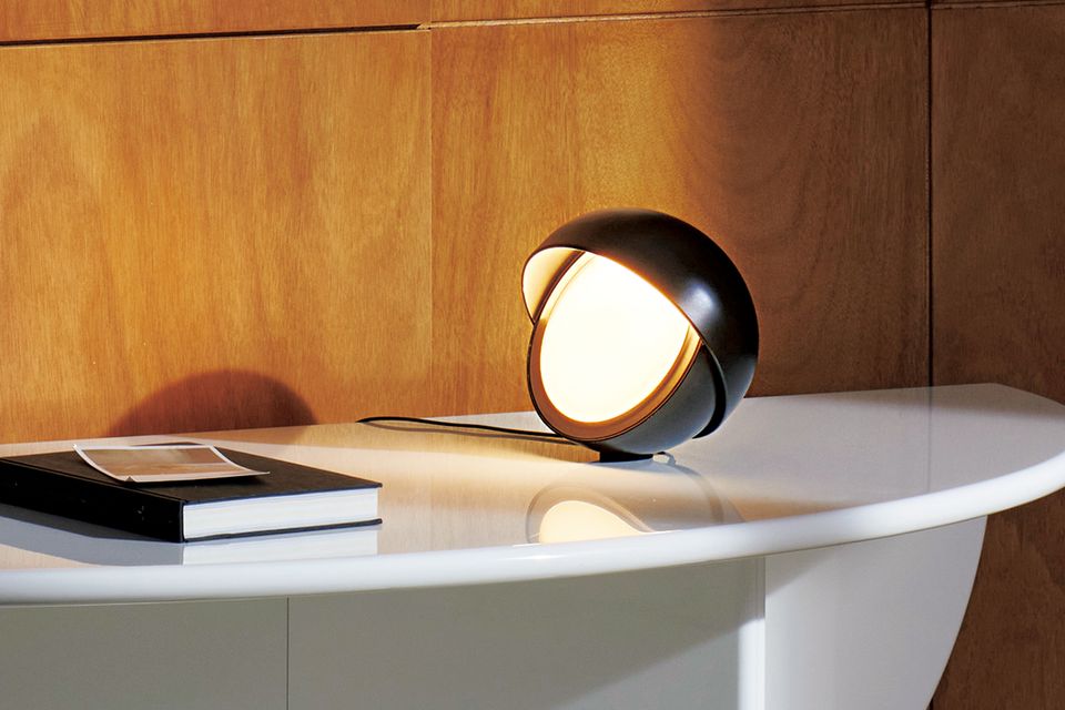 写真上は、建築家のイコ・パリージが1970年に手がけた「パルペブラ」(幅17×奥行き19×高さ19センチ、16万9400円)。瞼のような部分が開閉し、光の角度を調整でき、無段階調光も可能。写真下は実用性と美を追求したチャールズ・イームズが1935年に製作した「ヘレナ」(右・幅22×奥行き24×高さ24センチ、19万8000円~ 左・幅30×奥行き32×高さ29センチ、20万9000円~)。球体を回転させて光の向きを調整できます。