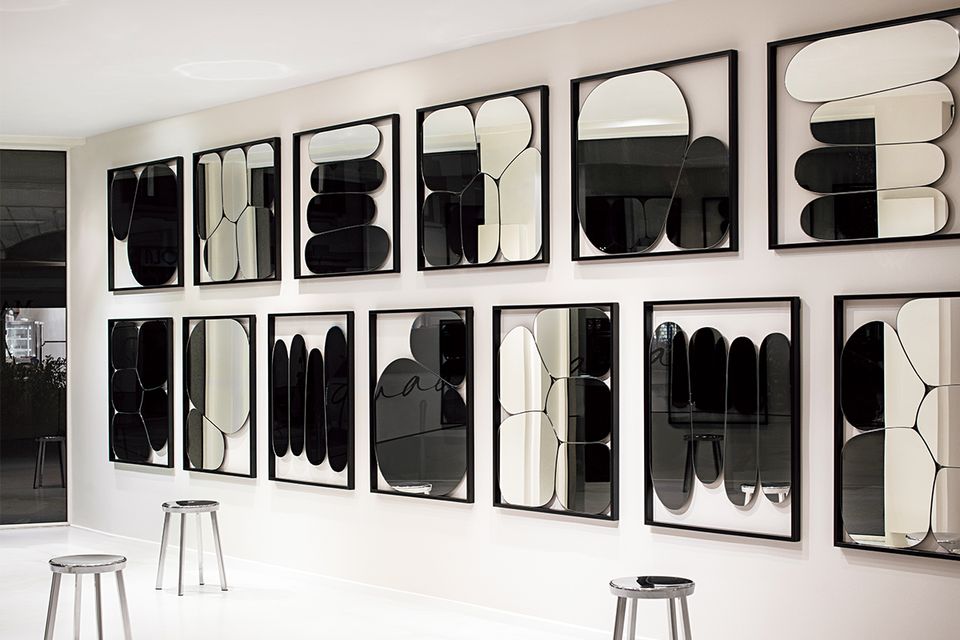 漆黒のメタルフレームに収められた鏡の枚数は、2枚、4枚、5枚の3種類(各89.2×104 センチ、24万7500円)。縦横どちらにも取り付けられ、向きによって印象ががらりと変わります。