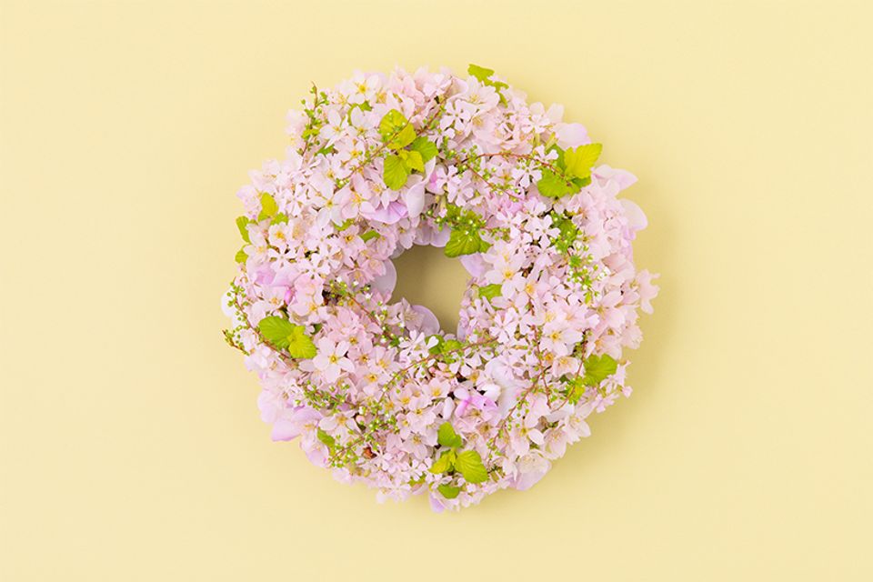 サクラとグリーンで描く季節のひととき。春の風をまとったフラワーリース