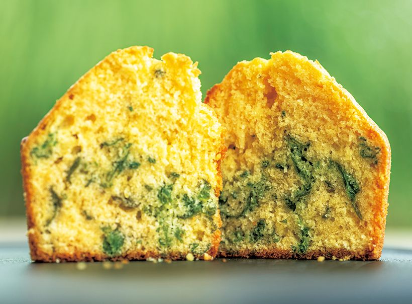 柔らかい葉を摘み取って、ヨモギが入ったマフィンを作りました。ヨモギの葉は冷凍保存もできますが、この時期には畑で採れたばかりの新鮮なものを使うのが最高です。畑仕事やガーデニングなど、フィールドワークの休憩時間に紅茶とともにいただくと疲れがとれます。