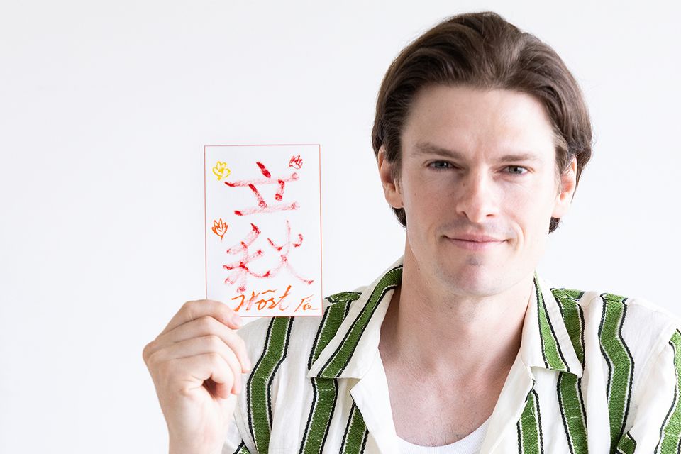 「実は書道など、文字を書くことが苦手で」と言いながらも、スウェーデン語をあしらいオリジナリティ溢れるデザインに。