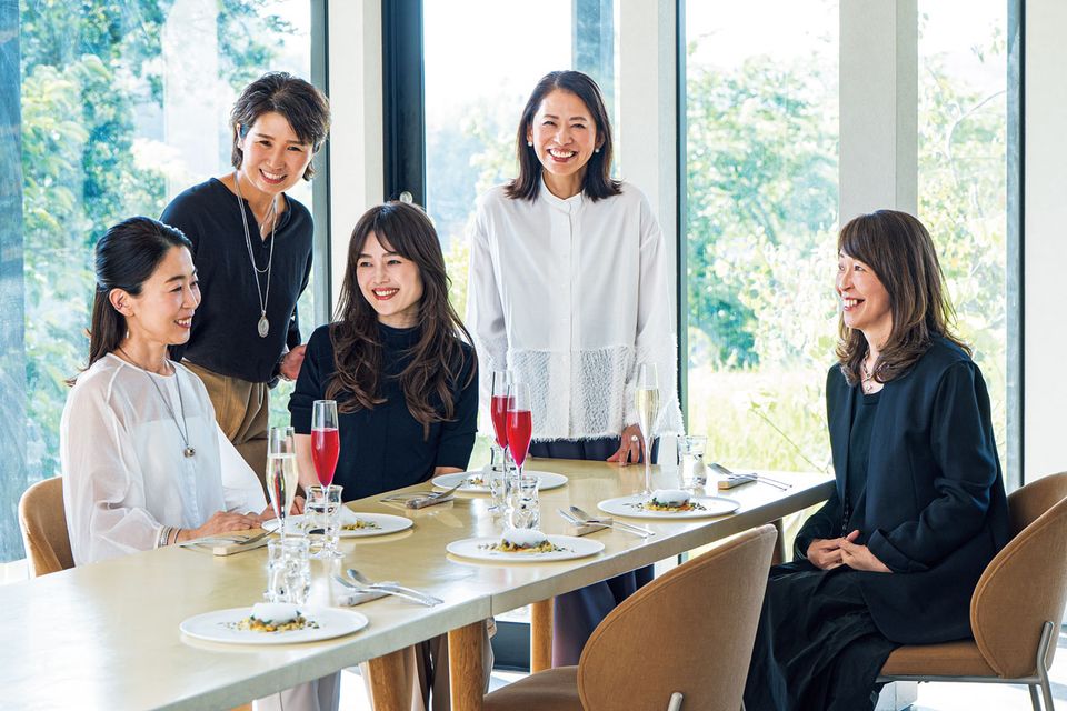 芦屋や神戸で会社を経営する女性たちが貴田加野さんの呼びかけで週末、フランス料理店「SETTAN」に集い、情報交換。職種は違っても経営者同士、共通の悩みもあり話は尽きない。「元気を与え合う関係だからつきあいも長続きする」と貴田さん。この日のメンバーは右から三好万記子さん、貴田さん、岡未来さん、岸上奈渚子さん、星加ルリコさん。