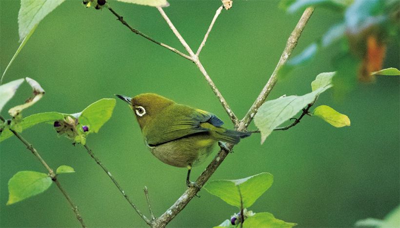 裏の畑の土手に生えたヤブムラサキにメジロがやってきました。抹茶色のとても美しい鳥です。これから寒くなると十数匹くらいの集団になって農地の木々を飛び渡ります。