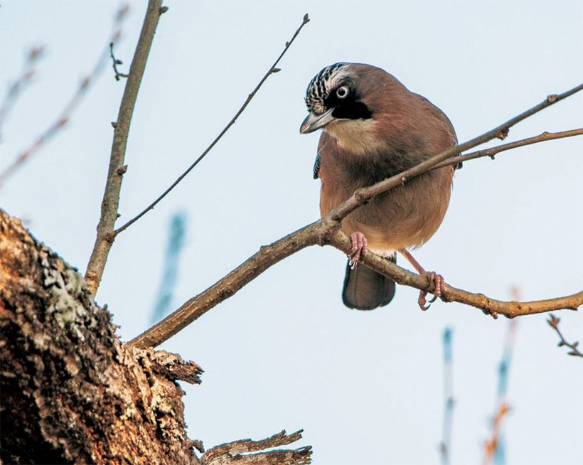 土手の柿の木に毎日カケスがやってきます。ギャーギャーとガラガラ声で鳴くので迫力があります。カケスは、どんぐりを一定の場所に蓄える習性があるので、ひょっとしたら近くにあるコナラの実を狙っているのかもしれません。