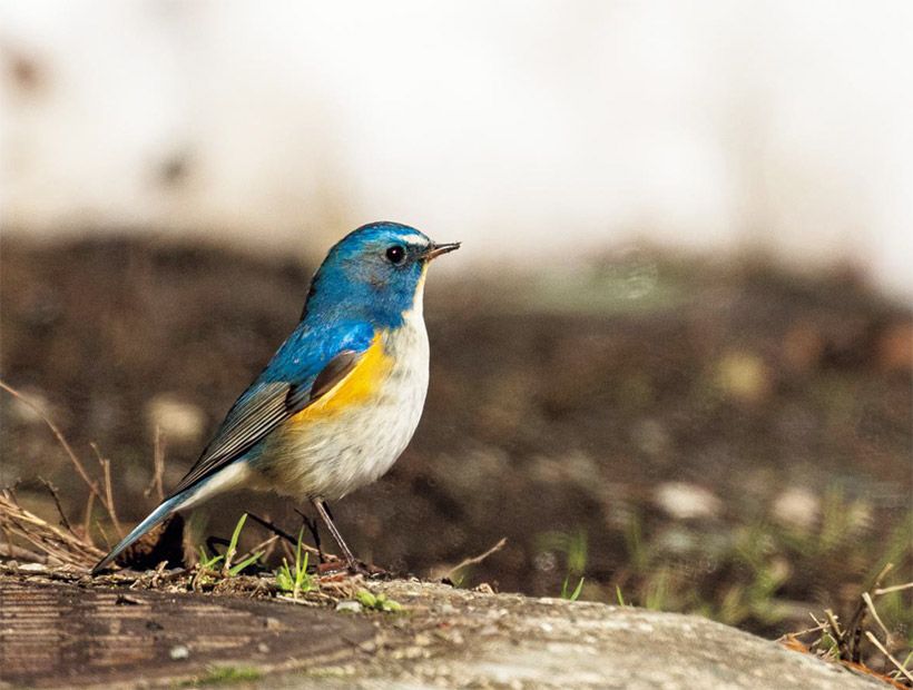 冬の間、神社の杜の縁でよく見かけたルリビタキ。本格的な春がくるまでは、爽やかな姿に出会えそうです。