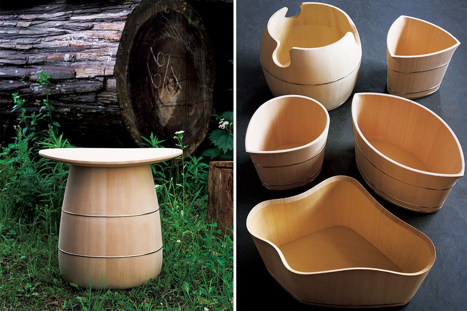 続くデザイナーとの協業では、約700年続く桶の伝統工法を超え、タガ1本で締める製法を確立。
