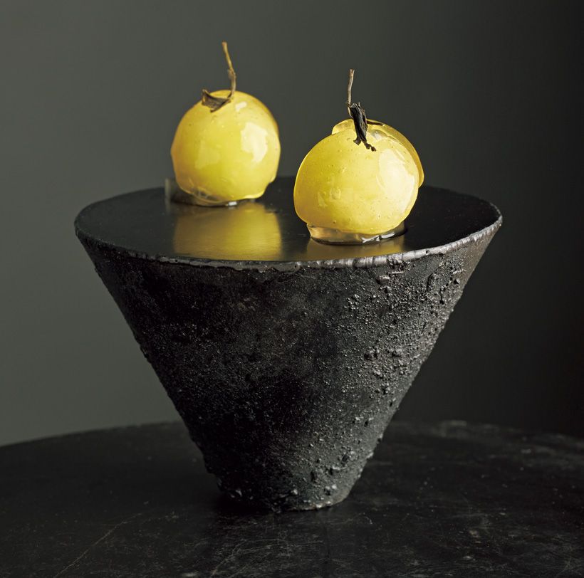 ひと皿のデザートに、果実の生命力と多面的な表情を生き生きと表現する駒瀨奈美子さん。温度や食感、唇にふれる触感までを非常に繊細に考えて作るデザートの世界は、器との融合があって初めて完成されます。今回は、好きな器から発想して、デザートを作っていただきました。