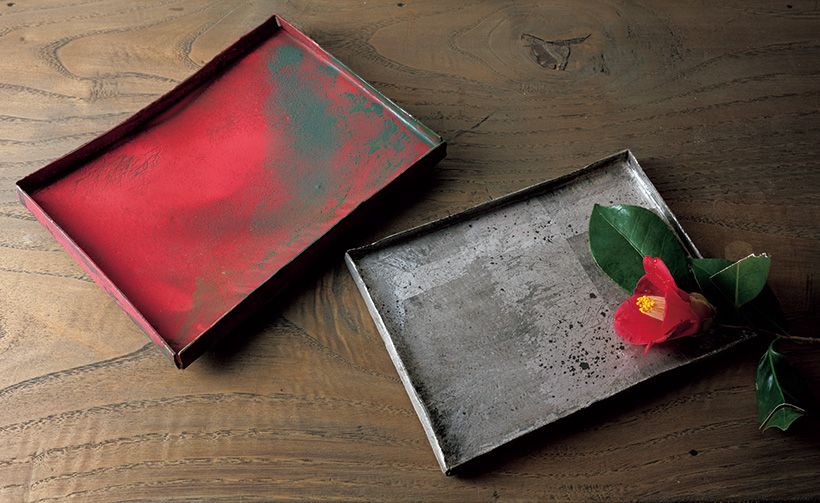 お盆2点(各20×15×高さ1.5センチ、3万3000円)。下写真のギャラリーのように、壁掛けのオブジェとして飾ることも。