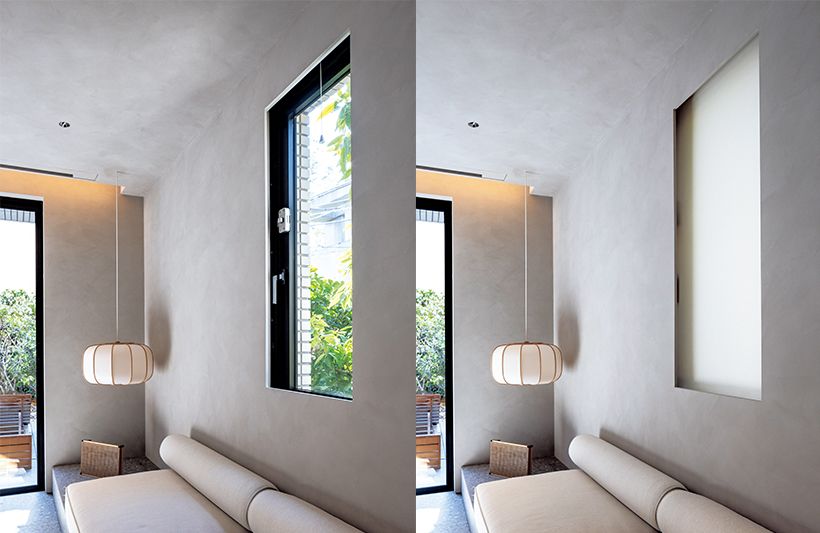 窓枠は極力隠す「マンションっぽさは開口部に表れやすい」と吉田さん。そこで採用したのが、窓枠を見せないように壁面をつくること。既存サッシの手前にプラスターボードを立て込み、枠の存在感を消すことで見た目を整えました。細部の処理によって構成の美しさを保ち、空間の静謐さを演出しています。
