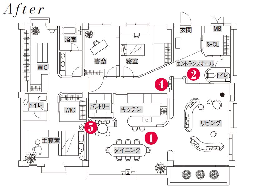 一般的なPP分離(パブリックとプライベートの明確な区分)を前提としつつ、可能な範囲で両者を緩やかに重ねる“PP融合”を試みたA邸。耐力壁や開口位置の制約を踏まえながら、動線の中で公私が自然に交差する構成に。華美に頼らず、質で魅せるホテルライクなラグジュアリーを形にしています。(図面作成/ワークプレス)