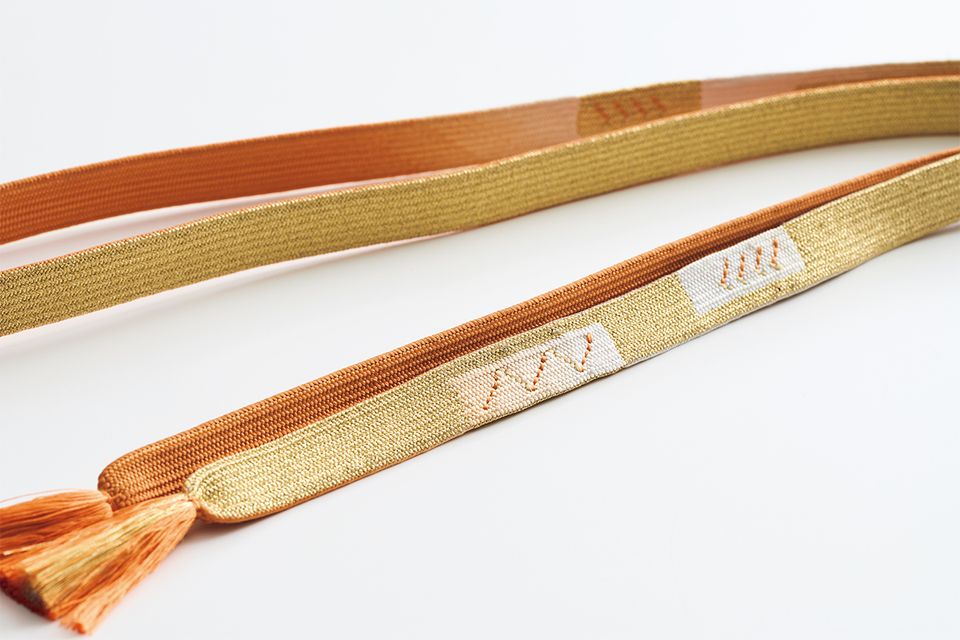 裏が金という帯締めは、しっかりと組まれた平組(ひらぐみ)で高麗組だと考えられます。華やかでフォーマル系のきものに使われます。