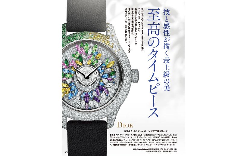 煌びやかな宝石たちをまとい華やかさ満点のハイジュエリーウォッチや、高度な手仕事の技と美しいデザインを組み合わせた複雑機構時計。夏の装いに最上級の優雅さをもたらしてくれる至高のタイムピースをご紹介します。