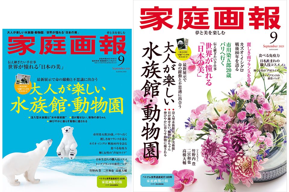 『家庭画報』2025年9月号特製ポストカード 白浜パンダファミリー ©世界文化社 ※通常版とプレミアムライト版では、ポストカードの写真や枚数が異なります。
