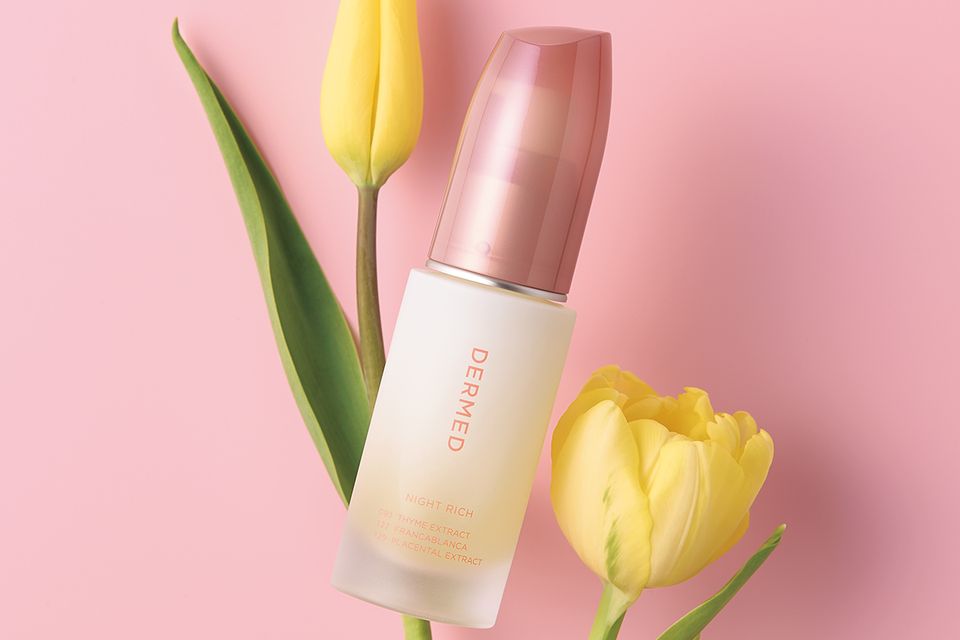 現在、全商品のバージョンアップを進めるデルメッド。心地よく入眠できる香りへの改良、保湿力の向上も実現。「単に高保湿成分を配合するのではなく、バランスを何度も見直し、30日の使用で従来品より水分量が61パーセント、肌弾力も9パーセントアップという結果を得ています。進化したナイトリッチにご注目ください」。