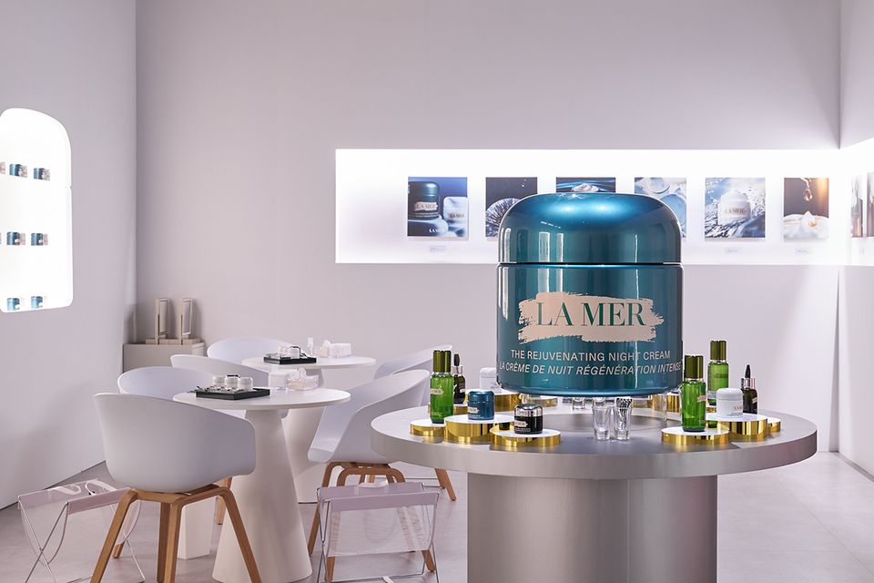 エントランスでは、ラ・メールを代表するエイジングケア クリーム「ザ・モイスチャライジング ソフト クリーム」の世界へ誘うオブジェがお出迎え。