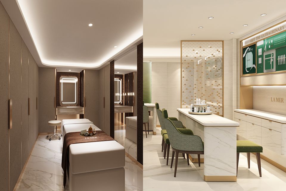 柔らかなオフホワイトとゴールドを基調とした店内は、海の癒しの力と洗練されたラグジュアリーを体感できる心地よい空間。インテリアから接客まで、全ての体験を通してラ・メールの世界観を堪能することができます。